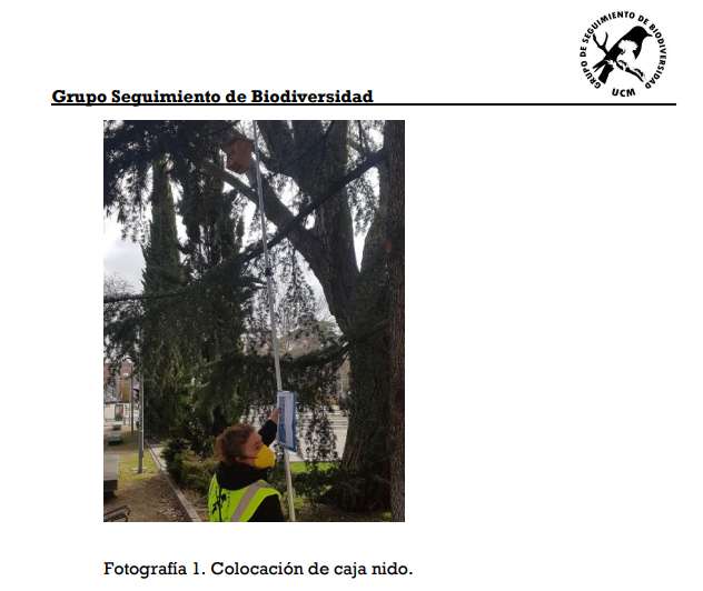 Se han instalado 50 nuevas cajas nido en el Campus de Moncloa de la Universidad Complutense de Madrid bajo el marco del Plan de Conectividad de la Infraestructura Verde y Biodiversidad promovido por la Unidad de Campus y Medio Ambiente dependiente del Vicerrectorado de Tecnología y Sostenibilidad y financiadas por el Consorcio Urbanístico de Ciudad Universitaria. Estas cajas junto a las 150 ya instaladas desde hace más de 10 años en la misma localidad, las 40 cajas del Campus de Somosaguas y las más de 700 cajas de la ciudad de Madrid, forman parte de la Red de Seguimiento Científico, promovido y financiado por el Ayuntamiento de Madrid, Enara E.A y el grupo de Seguimiento de Biodiversidad de la Universidad Complutense de Madrid.